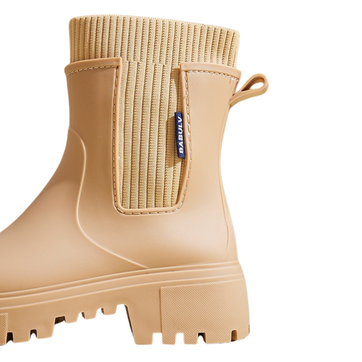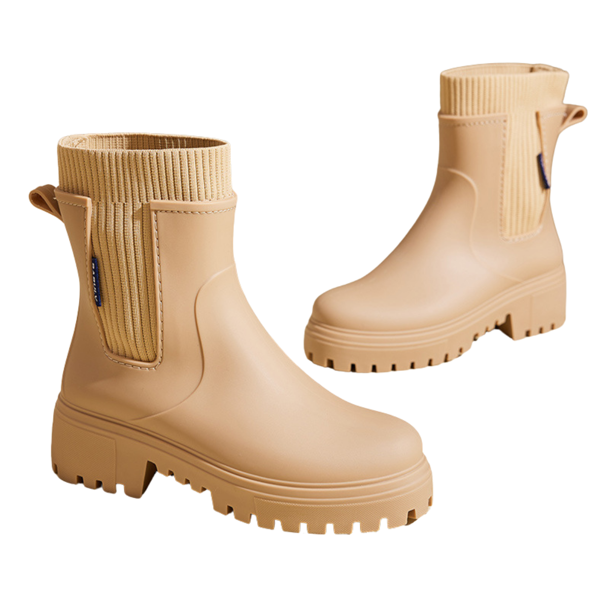 Son preciosas y súper cómodas. El color combina con todo y no se ven toscas como otras botas de agua. Me encantó que tengan ese detalle de tela en el tobillo, se sienten más abrigadas.