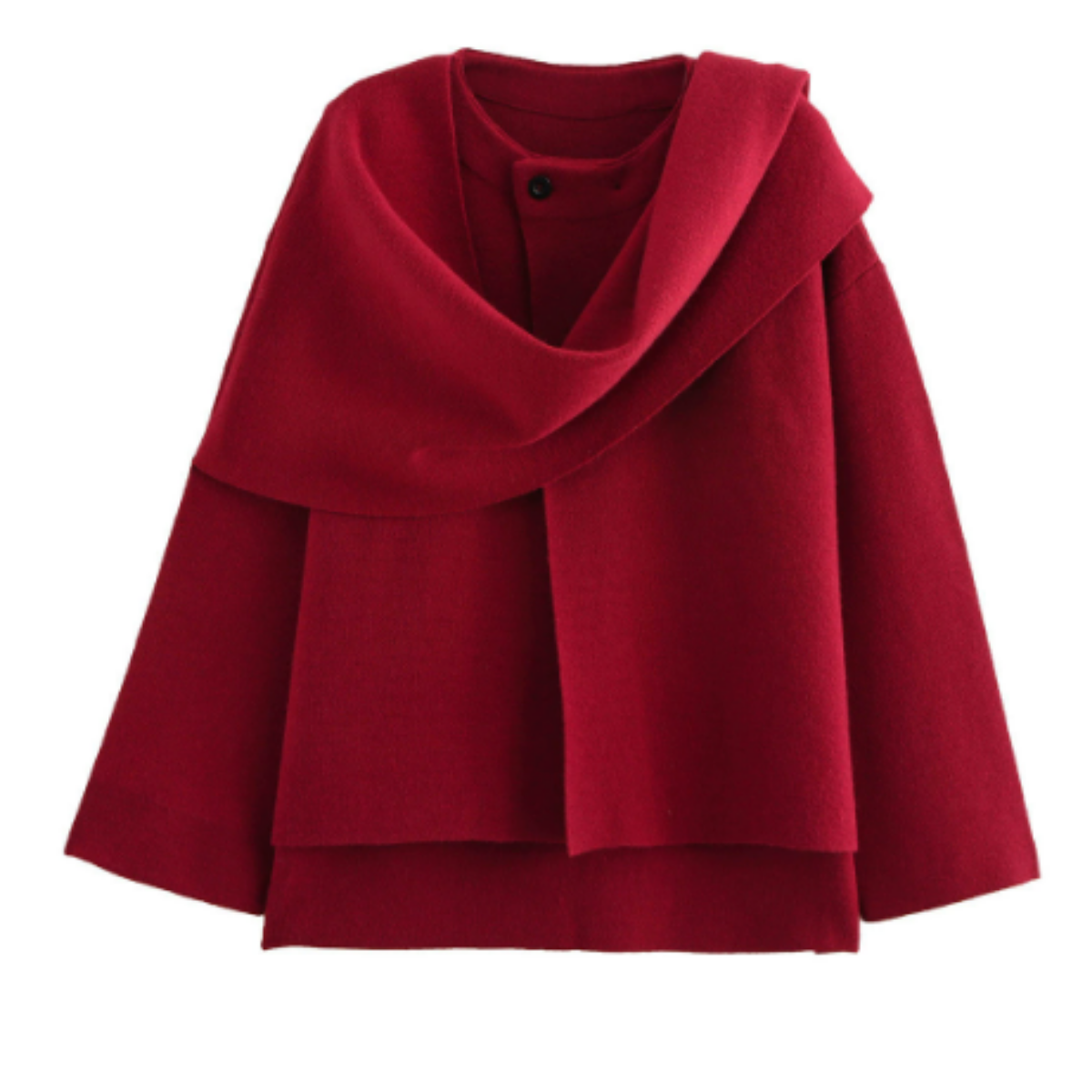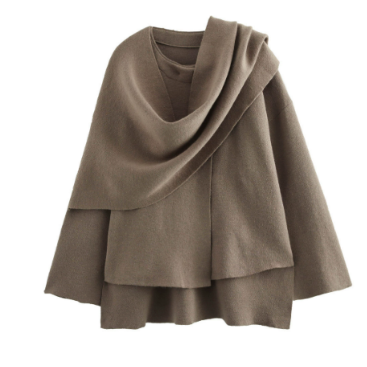 El corte es precioso y la bufanda asimétrica le da un aire súper moderno. Me preguntaron en la oficina dónde lo compré. Se ve mucho más caro de lo que es.