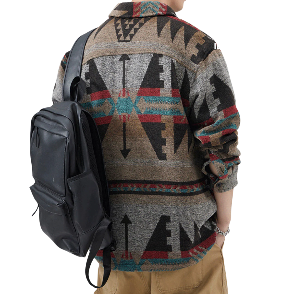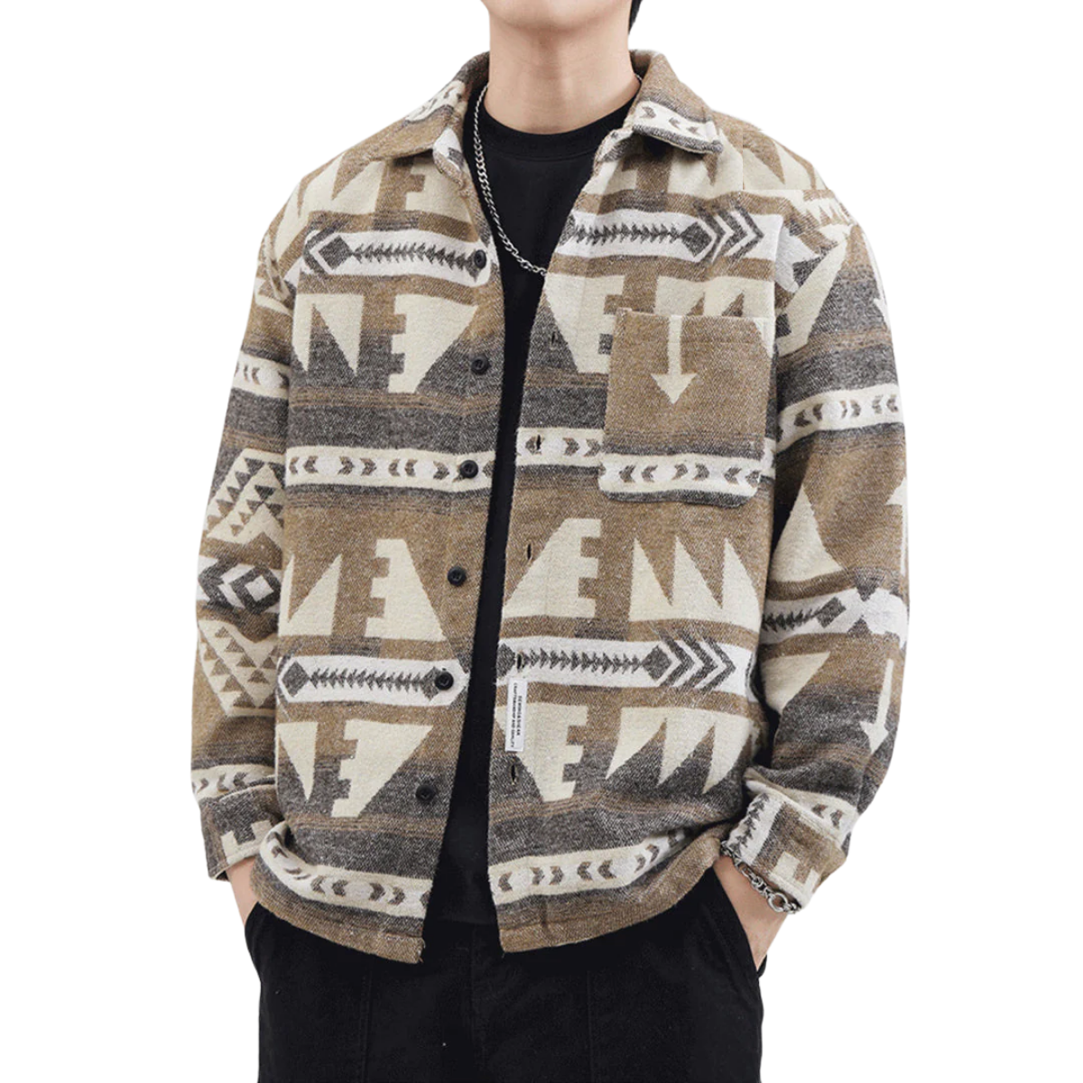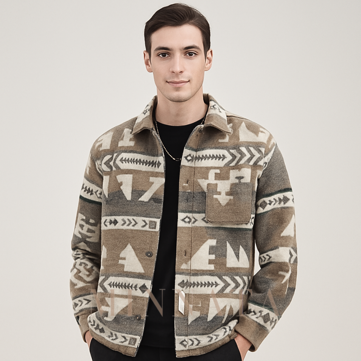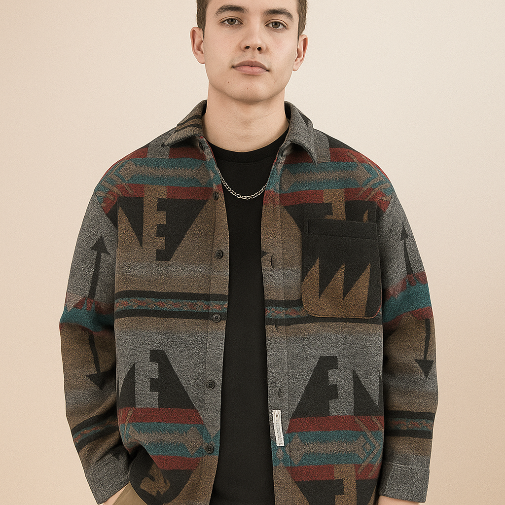 Esta chaqueta tipo camisa es la elección perfecta para quienes buscan abrigo sin perder personalidad. Su patrón geométrico distintivo y su confección en mezcla de lana aportan una textura cálida y sofisticada, ideal para los días más fríos de otoño e invierno. Una prenda versátil que se adapta tanto a entornos urbanos como a escapadas al aire libre.