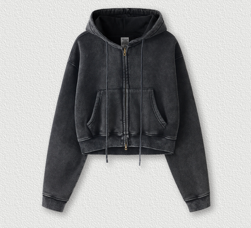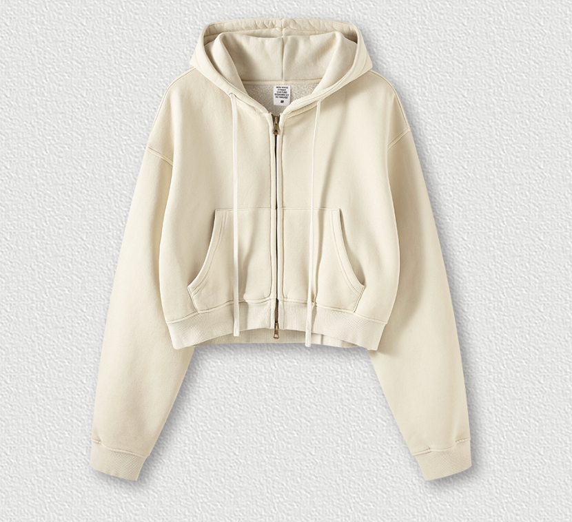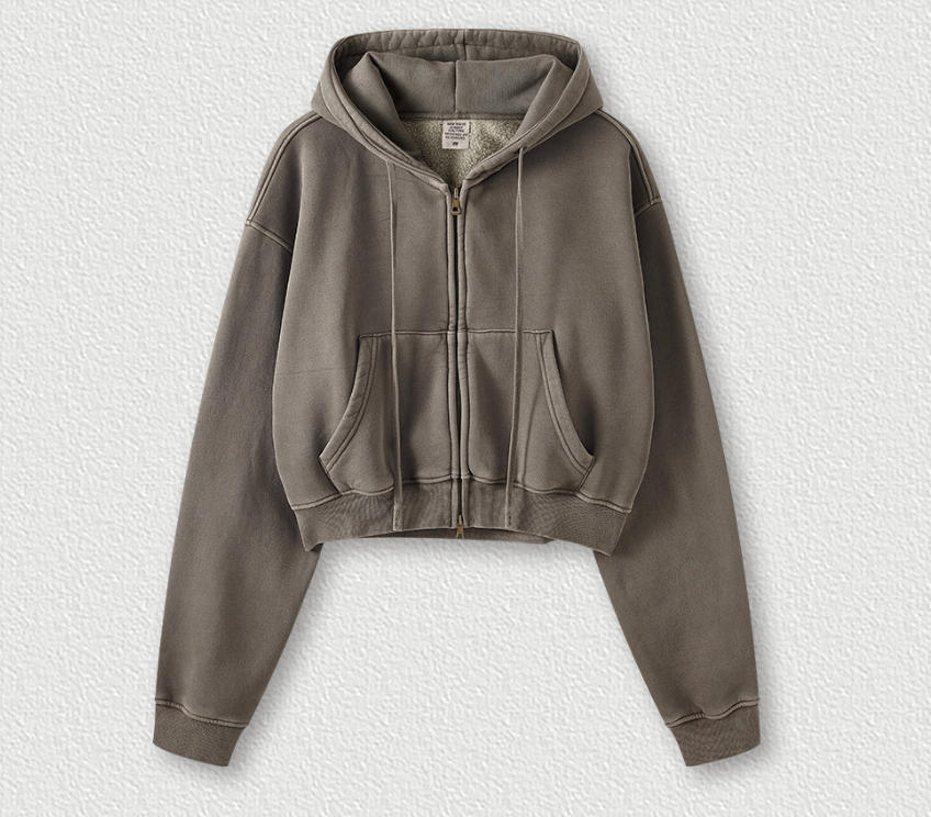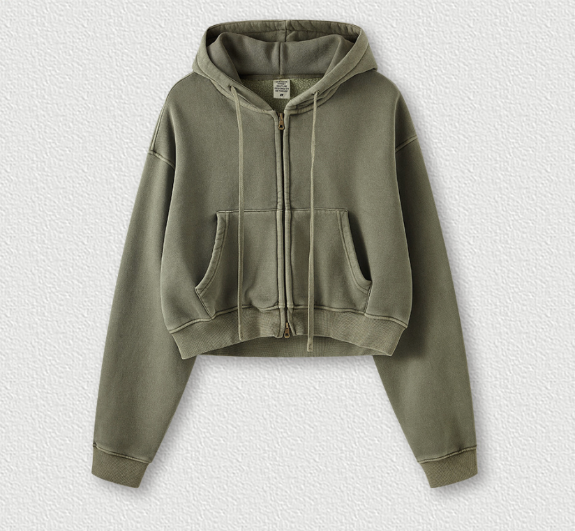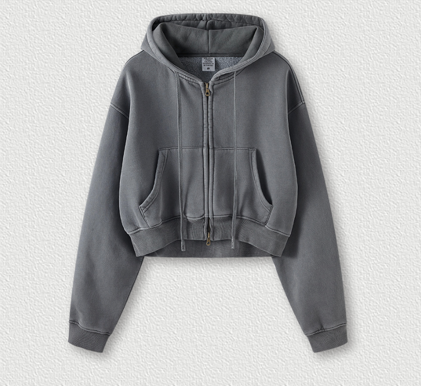 El cierre completo con cremallera permite llevarla abierta o cerrada, mientras que el cuello redondo y las mangas largas regulares mantienen el estilo minimalista. Perfecta para combinar con leggings de tiro alto, denim o faldas urbanas, esta prenda aporta un aire effortless a cualquier outfit.