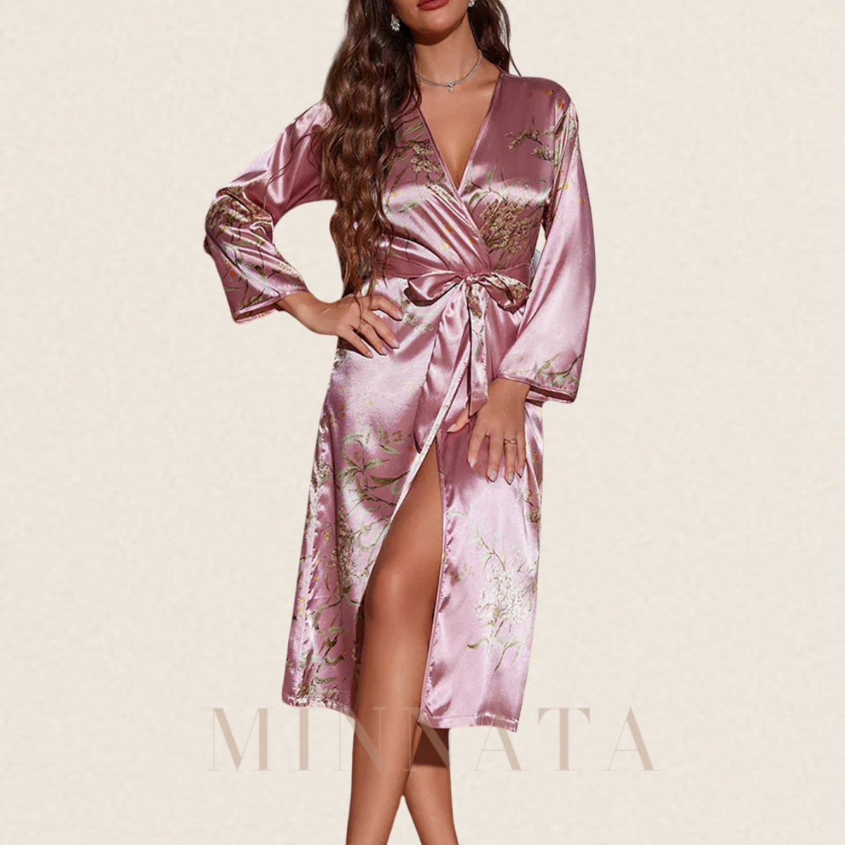 Bata de satén transpirable de lujo para mujer